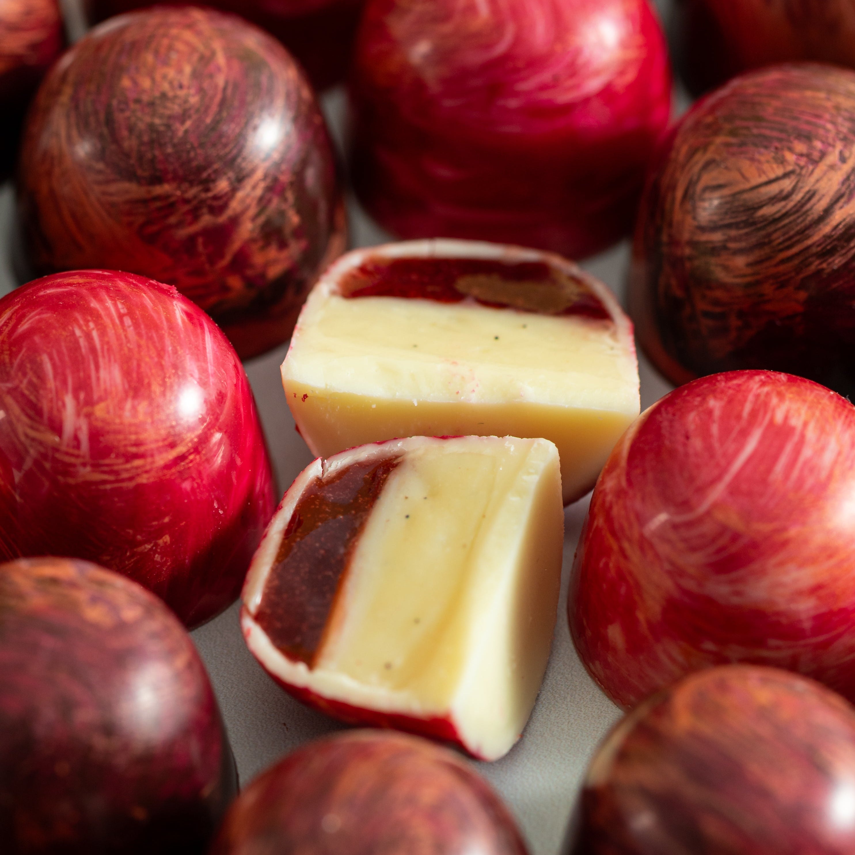 Our collection features Dark Almond Crème and Strawberries & Cream to freeze-dried summer berries and pistachio.